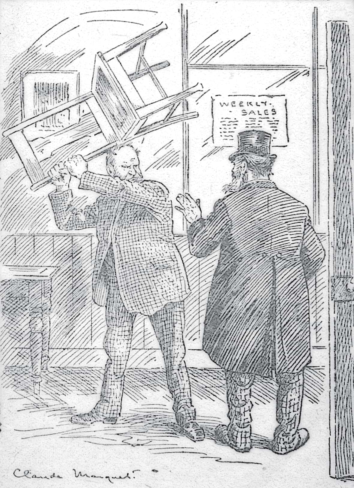 “Well, there are several gentlemen in the city bigger than you, sir,” he answered, “but I’ll enquire at the office,” and away he glided.
