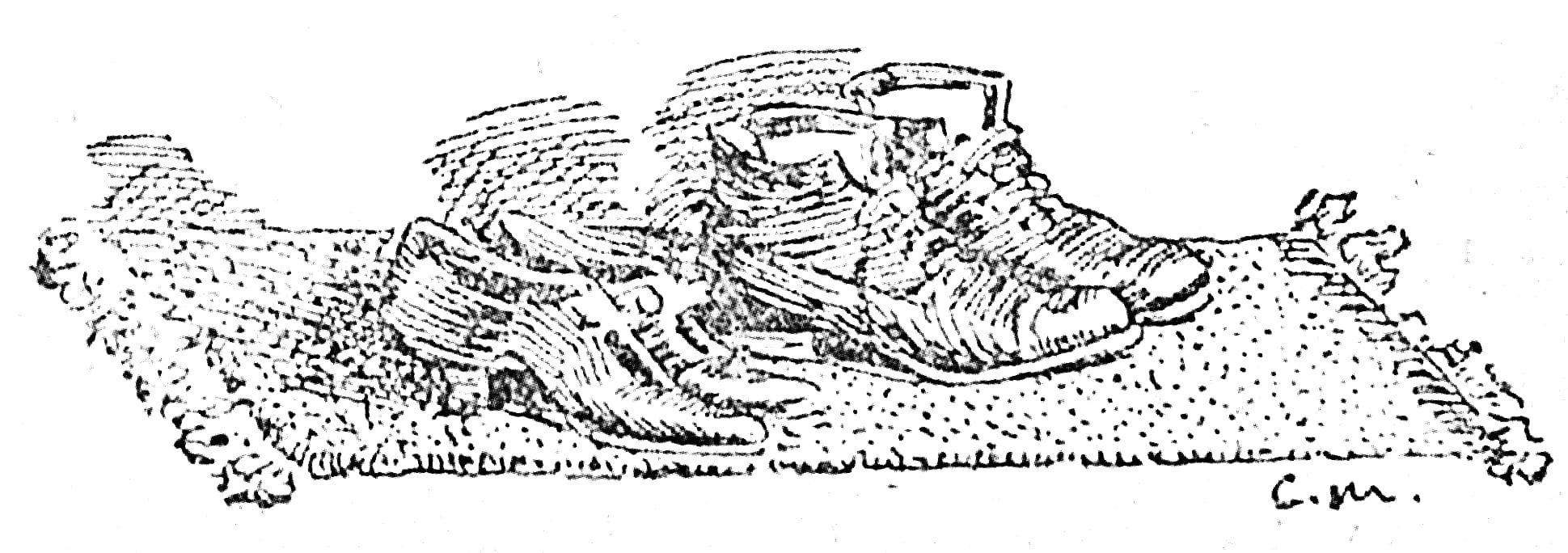 Successfully negotiating a corner in the road without going to pieces, Peter set sail for the township. The township was situated in the middle of a great plain. It sat, simmering there like a steak on a grid-iron. The road to it was level, and as good as could be expected from the average Australian Shire Council. There were numerous deformities along it, of course, many of which bore evidence of the Council’s intention to wipe them out some day. In fact, like the road to hell, the township road was paved with good intentions.